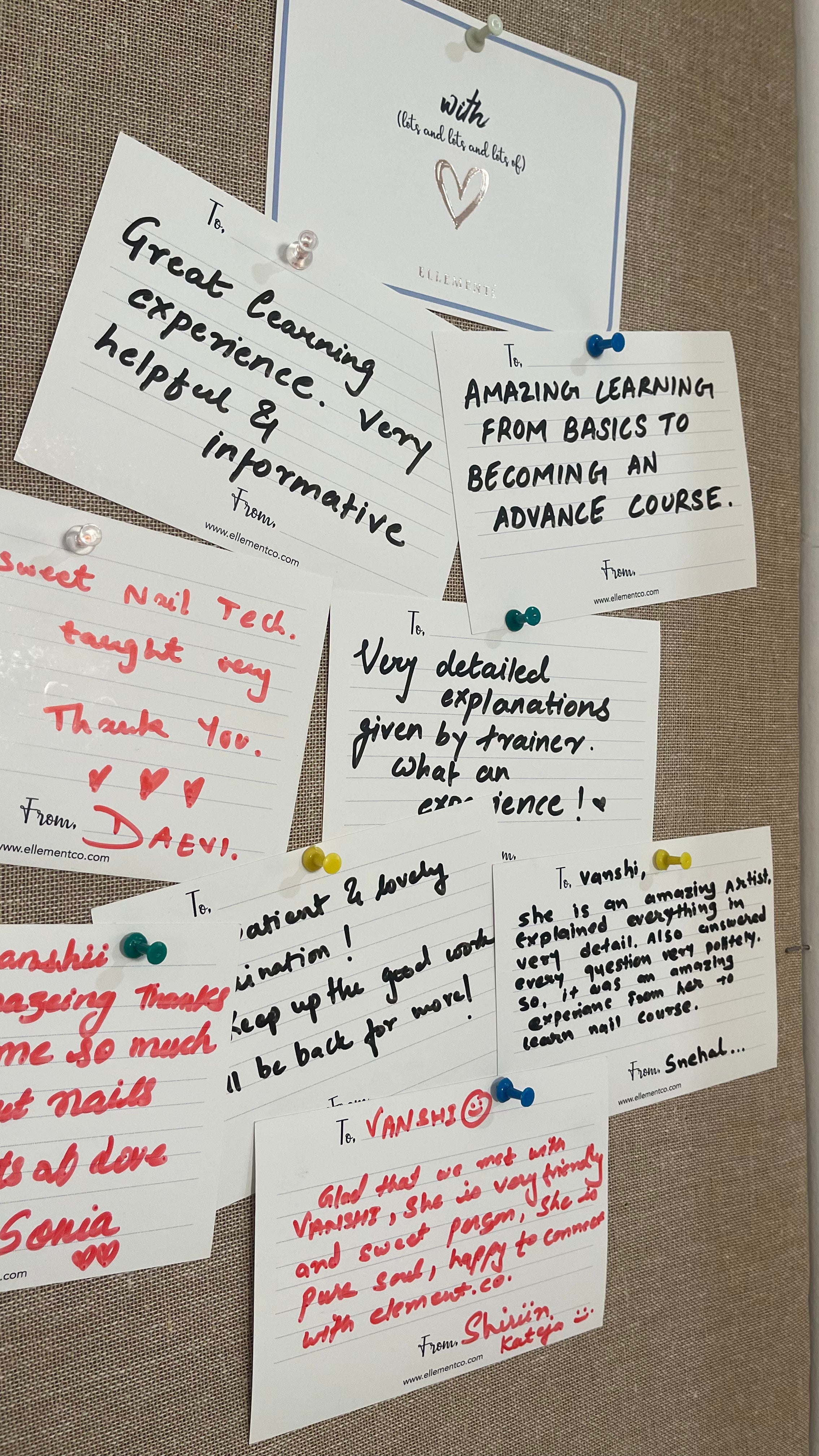 Doing professional nail art isn’t as easy as it looks, but, Ellement Co. Nail Academy & trainer Vanshi Savla made it accessible & enjoyable for me. I gained so much satisfaction from learning various techniques in such a short time. I’m excited to attend more workshops with you all. Thank you so much for the support & for such a wonderful experience! Doing professional nail art isn’t as easy as it looks, but, Ellement Co. Nail Academy & trainer Vanshi Savla made... Doing professional nail art isn’t as easy as it looks, but, Ellement Co. Nail Academy & trainer Vanshi Savla made it accessible & enjoyable for me. I gained so much satisfaction from learning various techniques in such a short time. I’m excited to attend more workshops with you all. Thank you so much for the support & for such a wonderful experience!